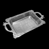 This Don Drumm open aluminum Lasagna Pan functions both as practical cookware and as beautiful serving dish. Not only is it great for lasagna but it is also great for strata, layered desserts, and other large deep dish cuisine. Sturdy decorative handles to hold onto, but use oven mitts, as they will be very hot out of the oven with the rest of the piece! Also use to heat and serve a basket of dinner rolls.