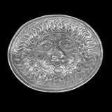 This Don Drumm Oval Sun Face Platter sports a classic smiling sun face. Highly textured but relatively lightweight, this medium sized platter is just the right size for a roast chicken. It also has a hole in the back so that it can be displayed when not in use.