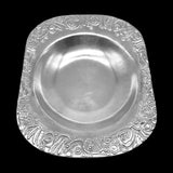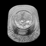 This Don Drumm aluminum Rectangular Bowl with Sun Bottom makes a regal presentation of any main or side dish. With an ecstatic border on top, and a large sun face on the bottom to display when not in use, this piece makes a wonderful wedding or anniversary gift.