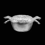 6.75"Dia. x 10.25"W at handles x 4"H (2.5"D interior)