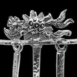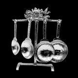 The Measuring Cups With Flower Stand are popular with cooks and bakers who enjoy seeing the measurement words (one cup, half cup, etc.) so clearly, but creatively written on each piece. The pewter display strip echoes the strong simplicity of the design of the cups, with a distinctively Drumm design on top. The 4 piece set includes the following: One Cup, 1/2 Cup, 1/3 Cup, and 1/4 Cup.