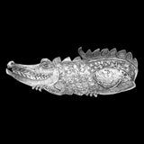 The Don Drumm Alligator Dish is a chic and fun piece for the animal enthusiast or Floridians in your life. The gator shows its sharp teeth, its scales rendered in fine detail and its tail curved up along its back. A fine gift for any occasion.