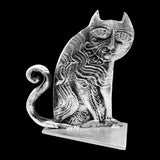 Create an atmosphere of fun and style in your home decor with the Don Drumm Cat in High Heels sculpture. This mischievous little kitty sits wearing a pair of ladies shoes and a smirk. The cat's body features a complex and beautiful abstract pattern. Great for the cat lovers in your life.