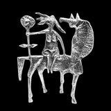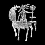 Don Drumm re-imagines the old English legend with his Lady Godiva sculpture. Cast in aluminum, the piece features the nude Godiva on horseback, who, according to legend, rode naked in the streets of Coventry in order to exempt the people of the town from oppressive taxes imposed by her husband.
