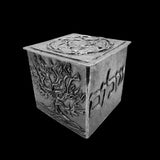 One specific design element you’ll find in each box is the interior base tile. In this pewter box, the interior, central, base consists of five, thin wavy lines, reminiscent of the curves and look of a river. On the first side, is the 21st letter in the Hebrew alphabet, “shin.” It is the first letter in the name of God (Shaddai) which translates to “Almighty.” However, this letter can have different meanings. This is followed by a representation of the Burning Bush. The third side has the Hebrew word “Shalom” which translates to “peace” in English. On the final side of this box is the Hebrew word for "life."
