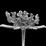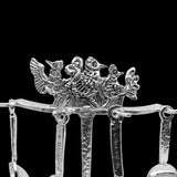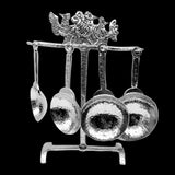The Measuring Cups With Birds Stand are popular with cooks and bakers who enjoy seeing the measurement words (one cup, half cup, etc.) so clearly, but creatively written on each piece. The pewter display strip echoes the strong simplicity of the design of the cups, with a distinctively Drumm design on top. The 4 piece set includes the following: One Cup, 1/2 Cup, 1/3 Cup, and 1/4 Cup.