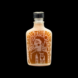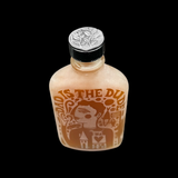 "Dad is the Dude" above a proud dad with his house, heart, dog, and car, and some fresh caught fish. Pewter vines top on cap. Holds 200ml. Photographed with liquid inside, flasks are clear etched glass and ready to fill with your drink of choice!