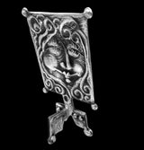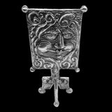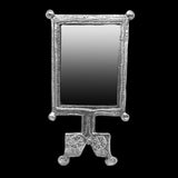 A beautiful way to accentuate your dresser or vanity, the classic Don Drumm Standing Mirror with Sun Face features decorative knobs at the corners that also function as a hanger for a necklace or bracelet. A signature Don Drumm sun face surprises on the back of the mirror.