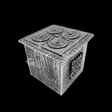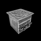 One specific design element you’ll find in each box is the interior base tile. In this pewter box, the interior, central, base you will find a simple swirl that stands out from the background with its texture. The first tile on the outside of the box is one that combines sea shells with the text, “She sells seal shells at the Seashore.” The next side contains a collection of elongated triangles. You will find on the next side an interesting use of texture and visuals. There is a grouping of small nubs in the shape of a square. You can feel each one despite it being a part of a larger shape. For the final side, a series of squares - are placed within each other.