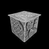 This box is from the Celtic collection Don designed. The lid for this collection has an interlocking Celtic knot pattern in the center. Surrounding this knot, there is a thin circular border.