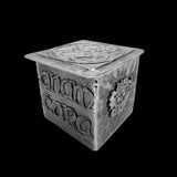 One specific design element you’ll find in each box is the interior base tile. In this pewter box, the interior, central, base consists of a design of a stylized alligator. For the first side of this box is the Celtic phrase, “anam cara.” This translates to “soul friend.” In the context of this, one can also say that it represents more of a “compassionate presence” through one’s journey in spiritual growth. On the next side, there is a small design of a traditional Don Drumm sun. It is crafted in a similar style to the interior alligator design. This side is followed by a side with a traditional Celtic knot. And lastly, the final side consists of three hearts, also crafted in a similar style as that of the alligator and sun on the other side of this pewter box.