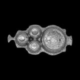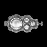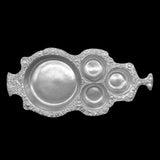 The Abstract Rim with Four Rounds Platter has one large round section for a featured recipe, and three small bowls for crackers, veggies, or sauces to compliment the main dish. There are endless possibilities! The signature Drumm design rim finishes outward to either side into "handles." Makes a wonderful gift or addition to an elegant table.