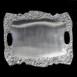 Create a beautiful display of food or decorative elements for your centerpiece with this ornate edged Floral Design Cut-Out Handle Platter. This is a very popular and elegant wedding gift!