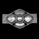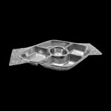 Modern elegance truly sparkles with the Don Drumm Diamond Dip Platter. Four sections are set in a diamond shape around a circular bowl in the center. The piece is accented by beautiful abstract patterning on the handles.