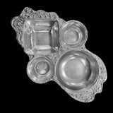 This elegant 4-Section Serving Bowl features large square and round sections with 2 small round sections, set in a single piece with a decorative rim all around and in between sections. Perfect for entertaining with chips and dips, or any snacks with sauces.