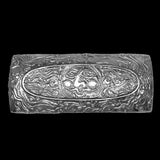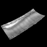 Add style and contemporary elegance to your dining room with the Don Drumm Flatboat Platter. Features a unique rectangular shape with a slightly curved surface and Don's classic wavy lines along the edges. A classic Drumm sun face appears on the bottom to display when not in use, amidst a large array of abstract patterns.