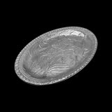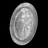 This Don Drumm aluminum Lady Slippers Platter displays a rare depiction of wildflowers in his cookware. The platter is a long oval shape with a high enough lip to hold in juices and sauces. So pretty, you'll want to keep it out on display! Makes a lovely gift for spring and summer birthdays or weddings.
