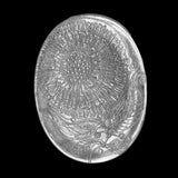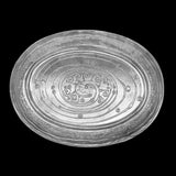A brilliant sunflower fills the surface of this large Don Drumm Oval Sunflower Platter. The sunflower is complimented by a swirl design on the reverse side. This platter is large enough for a grand presentation of roast turkey, ham, and other main course dishes.