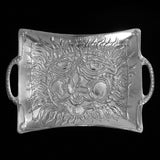 This very popular Rectangular Sun Platter with Handles boasts the classic bold radiating sun face on the front, and "DRUMM" amid swirling lines on back. Makes a great wedding gift or introduction to Don's serving pieces.
