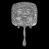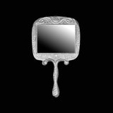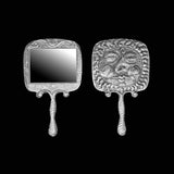 Add a truly striking and modern piece to your vanity or dresser with the Don Drumm Hand Mirror with Sun Face. The front has a large rectangular mirror surface framed by beautiful abstract patterns; and the back features a classic Drumm sun face with wavy sun rays.