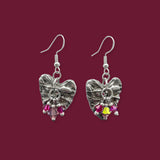 - Pewter Heart Earrings (Don Drumm) with Lavender Crystals (approximately 1.25 inches, sterling silver ear wires)