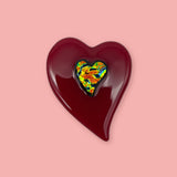 - Red Glass Heart with dual use - can be a pin or necklace - your choice (2 x 2.5 inches)