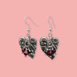 - Pewter Heart Earrings (Don Drumm) with Red Crystals (approximately 1.25 inches, sterling silver ear wires)