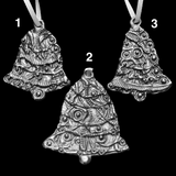 Don's "silver bells" are made of pewter! The three different designs of these Medium Bell Ornaments are perfect for your Christmas tree, or as a sweet package tie-on.