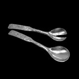 This Don Drumm Arroyo salad server set is a favorite for weddings and showers. It includes one bowl shaped spoon and one slotted spoon. Goes well with any of Don's bowls.