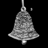 Don's "silver bells" are made of pewter! The three different designs of these Large Bell Ornaments are perfect for hanging on your Christmas tree, or as a sweet package tie-on. "Peace" is written on the reverse. Collect them all!