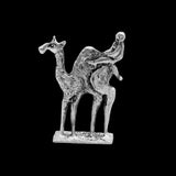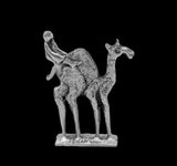 Take a journey into desert sands with the tiny pewter Don Drumm Camel with Rider sculpture. This detailed portrayal features a single-hump camel with a rider sitting on its back. A lovely little accent piece for your desk top or shelves. Collect all of Don's tiny sculptures to make your own unique scene!