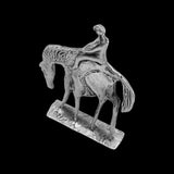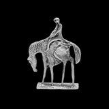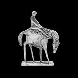 A beautiful piece of equestrian art, the tiny pewter Don Drumm Tiny Horseman features a rider atop a trotting steed. Makes a great accent piece for a modern desk at the office or the shelves and end tables of your home. Collect all of Don's tiny sculptures to make your own unique scene!