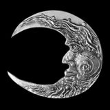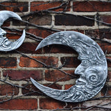 Hang this Large Abstract Crescent Moon wall hanging anywhere you would like some midnight silvery moon mystery. Classic Drumm wavy lines undulate along the surface of this austere "Man in the Moon" face, swirling into his robust round cheek. Grace any indoor or outdoor space with his aura. Shown with Medium Abstract Crescent Moon.
