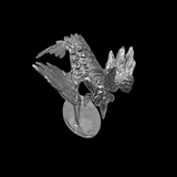 This bird appears as if it is about to take a bow. By this pose, you can imagine the bird at court and about to show deference to a monarch. With tail feathers arched down and slightly elongated - this bird shows true courtesy. This signed, one-of-a-kind, abstract, pewter bird sculpture features iconic Don Drumm line work and asymmetric character. In addition to being signed, you will receive a certificate of authenticity specific to your piece.